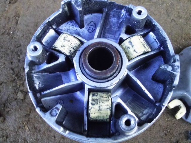 開けてみるとスズキのコストカットで3個に設定されているウェイトローラーが見えます。