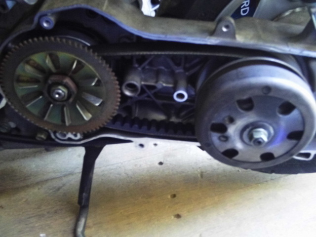 スクーターはベルトによって動力を伝え、遠心力で動くクラッチと無段階変速をさせるプーリーなどで駆動系が構成されています。