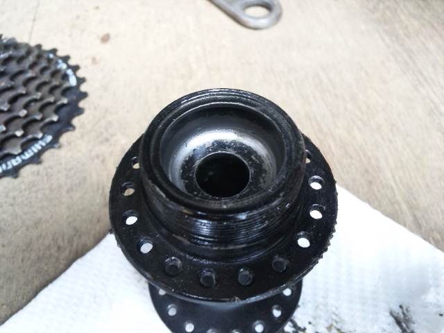 スポーク張替え修理をする予定でしたが、肝心のハブが破損しているので予定変更。