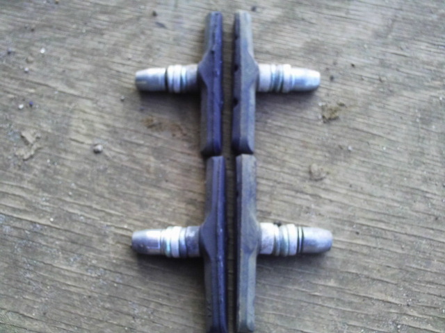 先日交換作業を行った自転車のブレーキシューですが、前後磨耗してレバーを握っても効かなくなっていました。