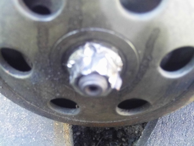 プーリー側です。何ですかこれは?ナットがタガネで加工され、外せませんよ???