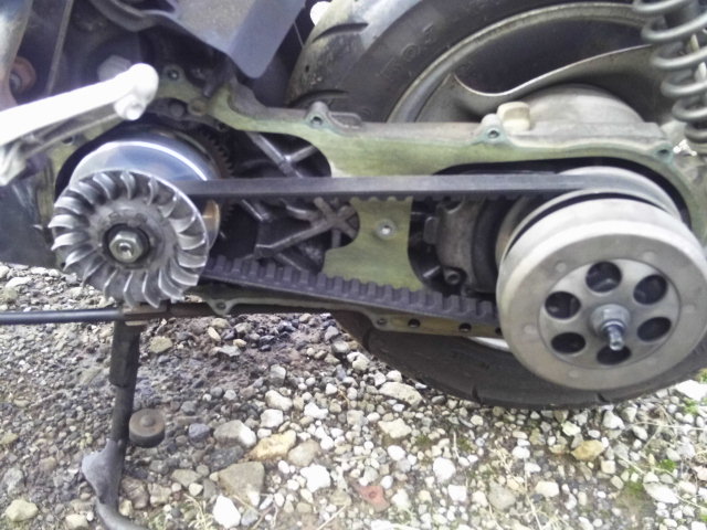 自転車やスーパーカブ等はチェーン駆動ですが、スクーターはベルト駆動です。