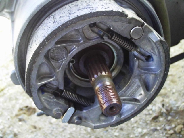 この辺の作業は一緒です。多少錆が見えますが、ドラムブレーキの仕組みは水の浸入は完全に防げないので、ブレーキの当たり面だけ綺麗にして組みました。