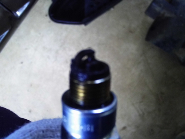 最近不調のバイクの依頼で点検してみると、プラグの汚れが目立っています。