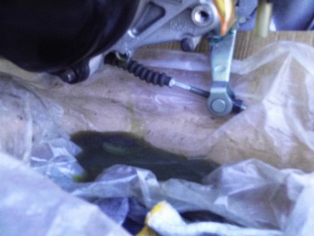 エンジンオイル交換作業は飛ばしてトランスミッションギヤオイル交換です。