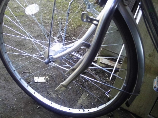 側面から衝撃を受けてしまうと、今回のようにフォークだけでは済まず、ホイールもグニャグニャに曲がっていたと思います。