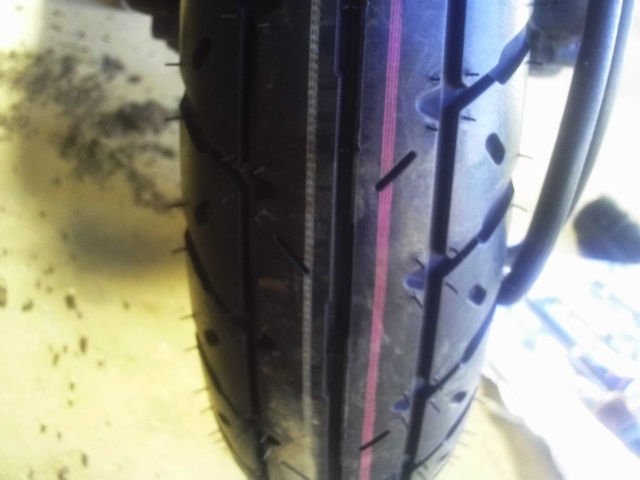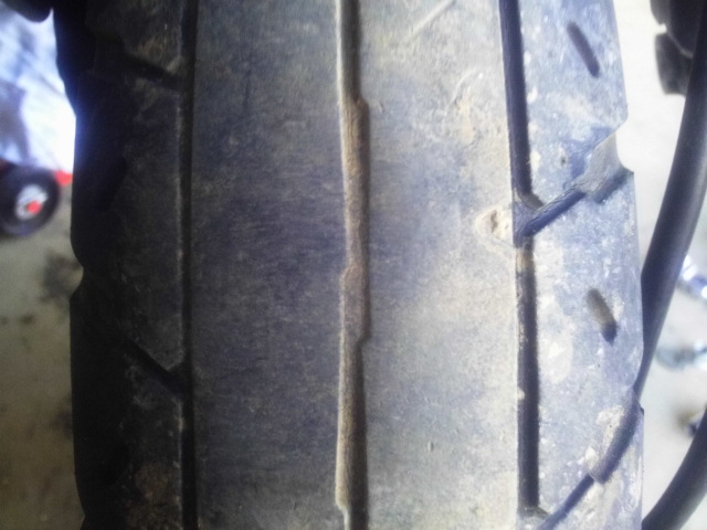 二輪車のタイヤは、残り溝が0.8mm以上無いと車検を通す事が出来ません。