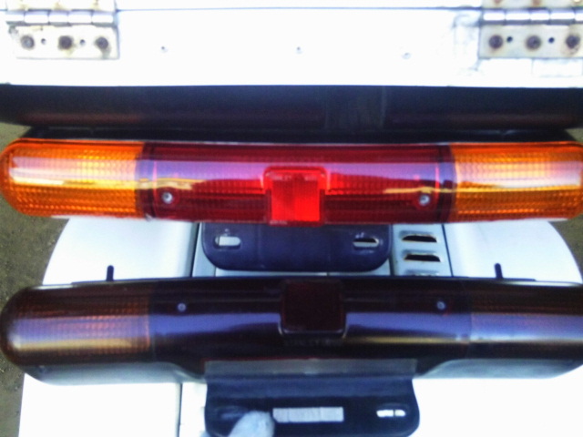 尾灯は赤色と法令で決まっていますので、こんな風に黒く曇っていては使えません。