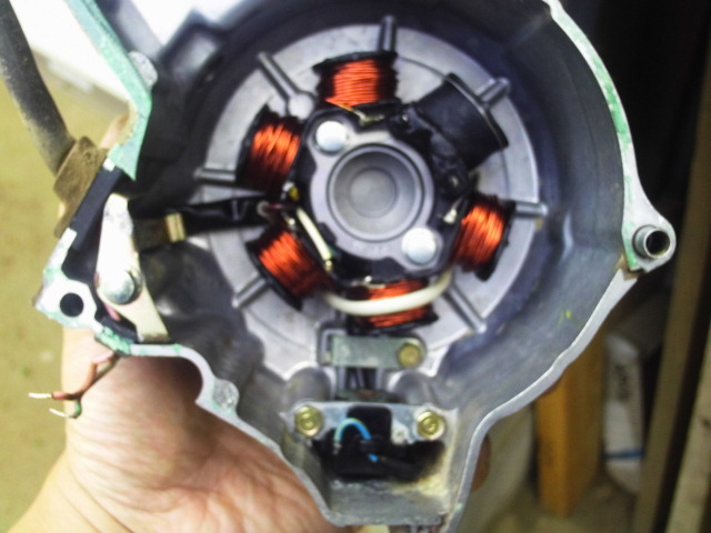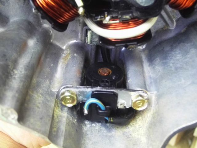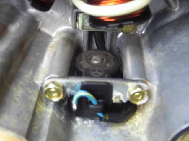 色々と点検・清掃した結果、点火時期を見ている部品がチェーンの錆びや埃を拾って錆びていました。