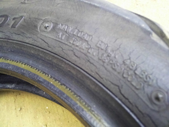 タイヤの側面を忘れずに見て欲しいのですが、ヒビ割れが多く出ています。