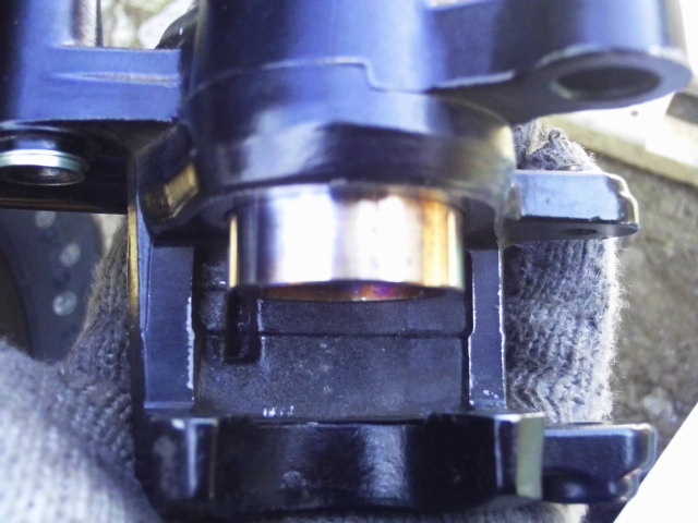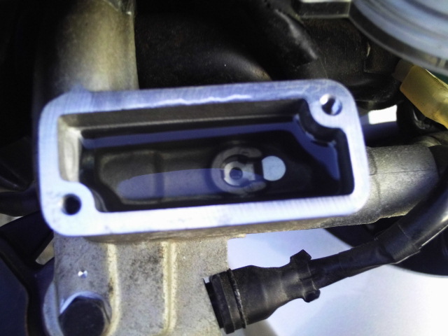 マスターシリンダーを開けると、だいぶ茶色でした。画像では暗くて黒っぽいですね。