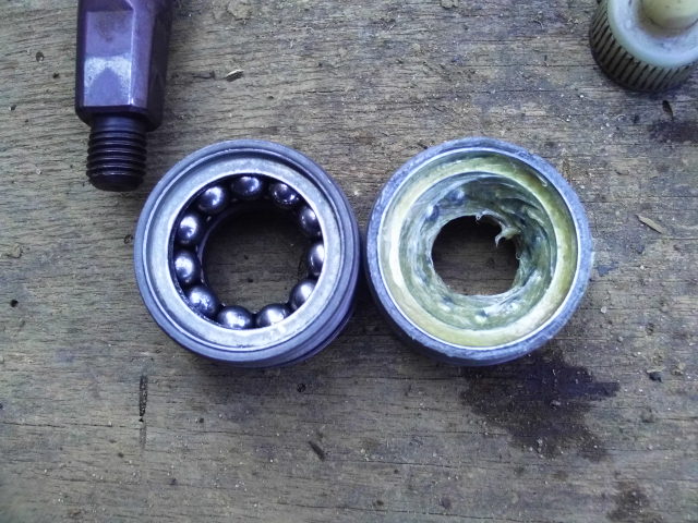 当然ながら一度も分解整備されていませんから、グリースも切れて軸とベアリングが擦れて磨耗しています。