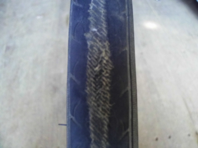 その時、既に繊維が見えていたのでタイヤ交換をオススメしましたが、御都合もあってそのまま限界を超えて使用されたようです。