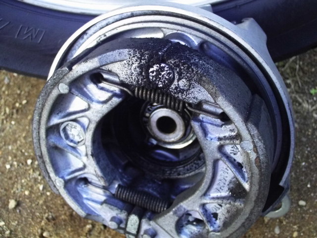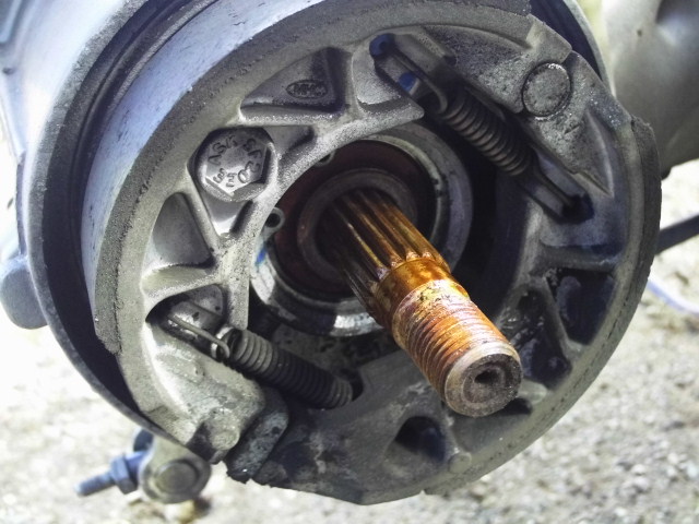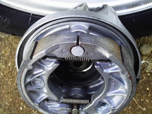この辺の作業は一緒です。多少錆が見えますが、ドラムブレーキの仕組みは水の浸入は完全に防げないので、ブレーキの当たり面だけ綺麗にして組みました。