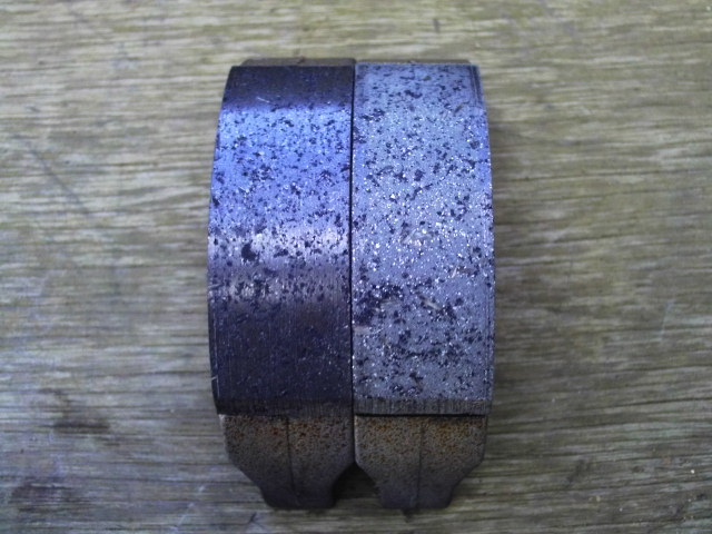 クラッチシューも右側に1mm以上の段付き磨耗。