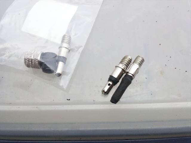 この画像右から 普通のバルブ(虫ゴム)タイプ、交換したスーパーバルブ(×)左が新品スーパーバルブです。