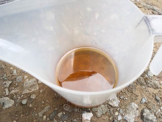 新品は透明感もある茶色ですから、3000キロ毎の交換・または6ヶ月に一度の交換はエンジンの為にサボらない方が良いですよ。