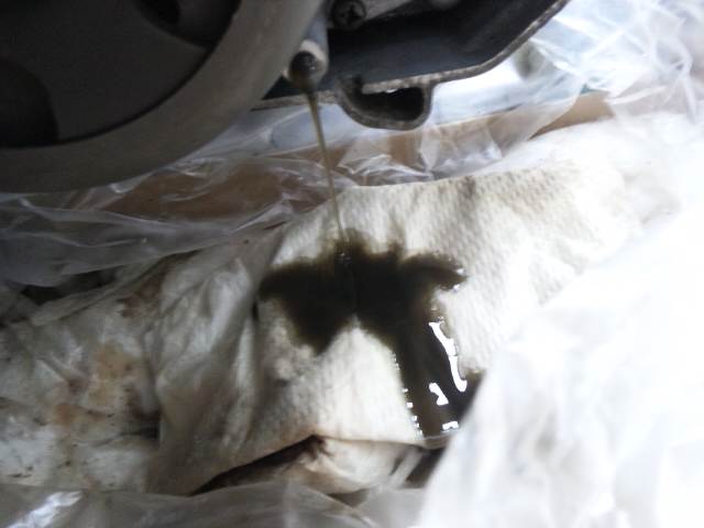 続いてエンジンオイルを排出すると・・・汚いですねぇ。