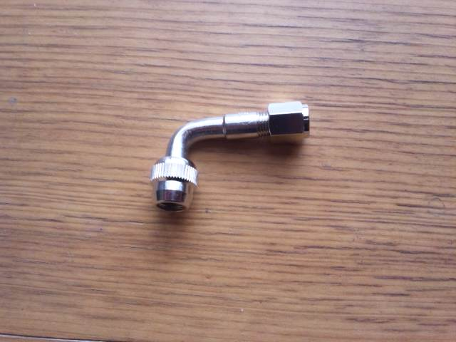 これを直バルブに回して取り付け、角度を変えて横に出す事により空気を入れやすくします。